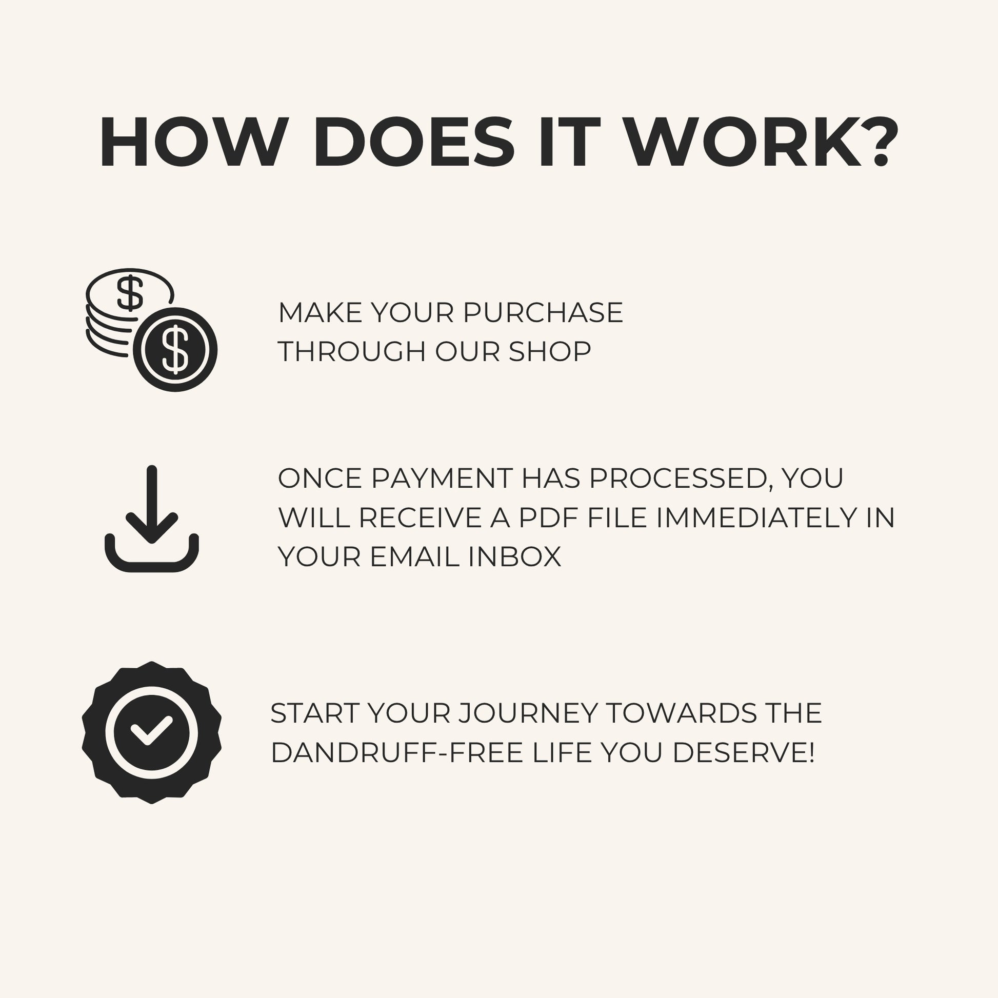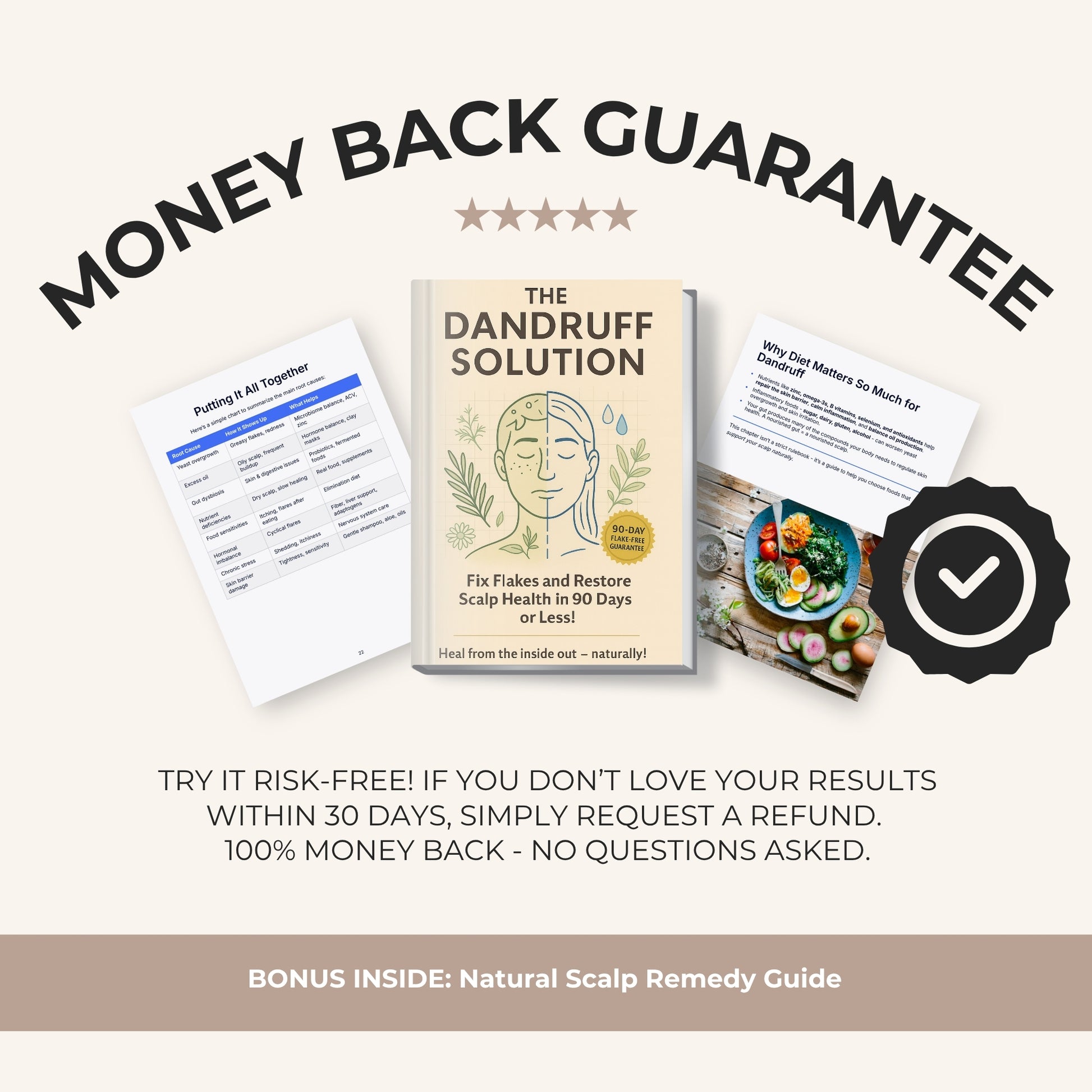 If this guide doesn’t help you dramatically reduce your dandruff, you get a full refund.