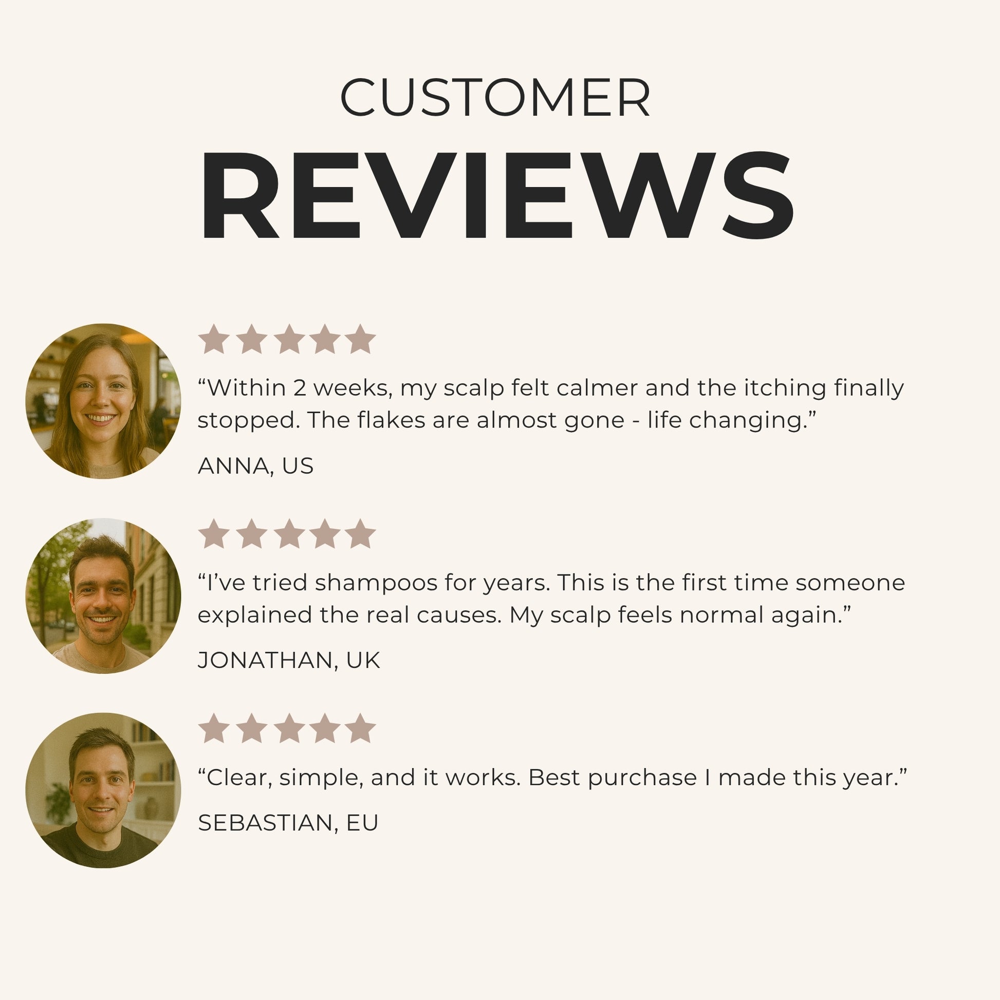 "I struggled with dandruff for over 10 years. I tried every shampoo on the shelf, but nothing worked long term. This blueprint finally gave me the answers I needed. After just 3 weeks, my flakes were gone and my confidence was back."