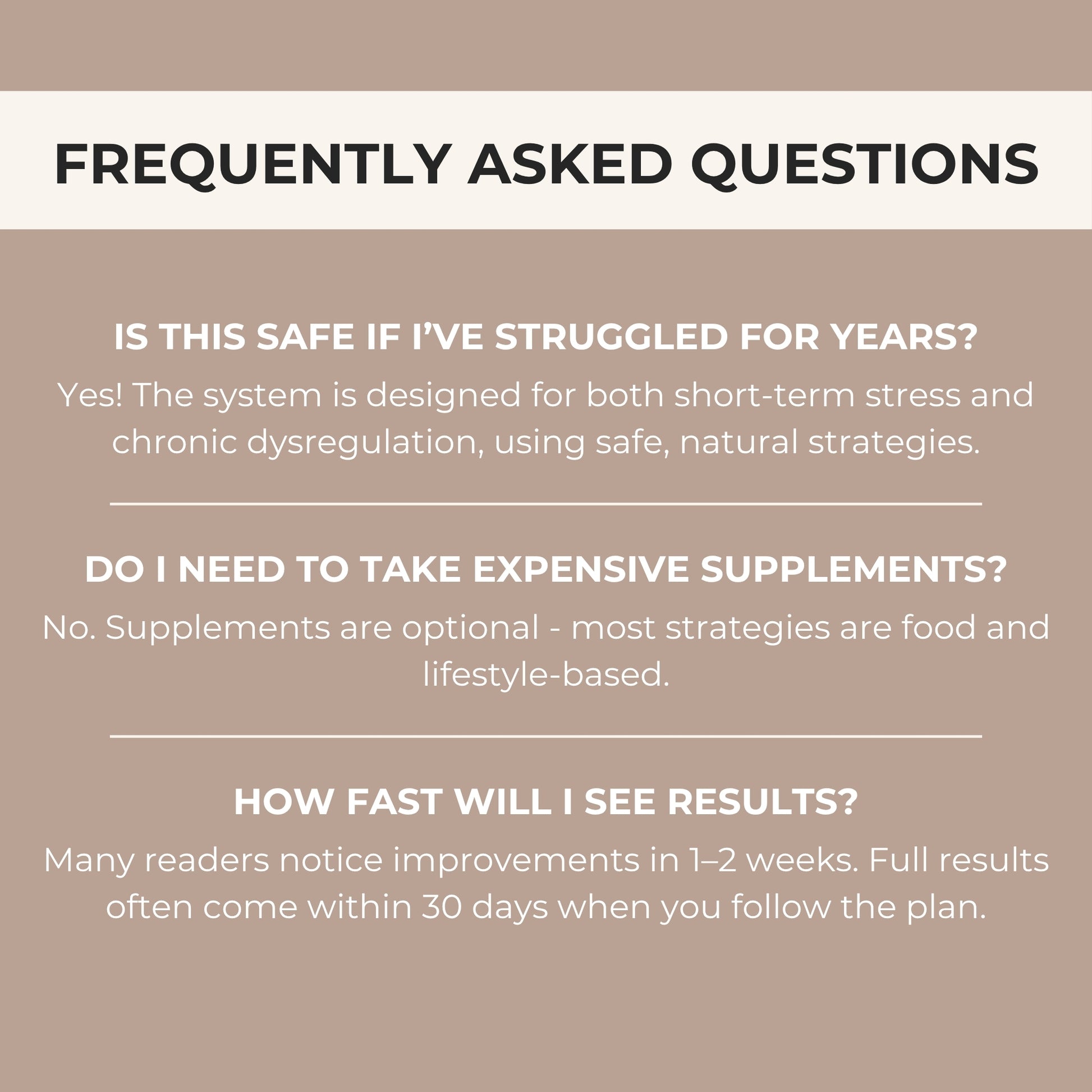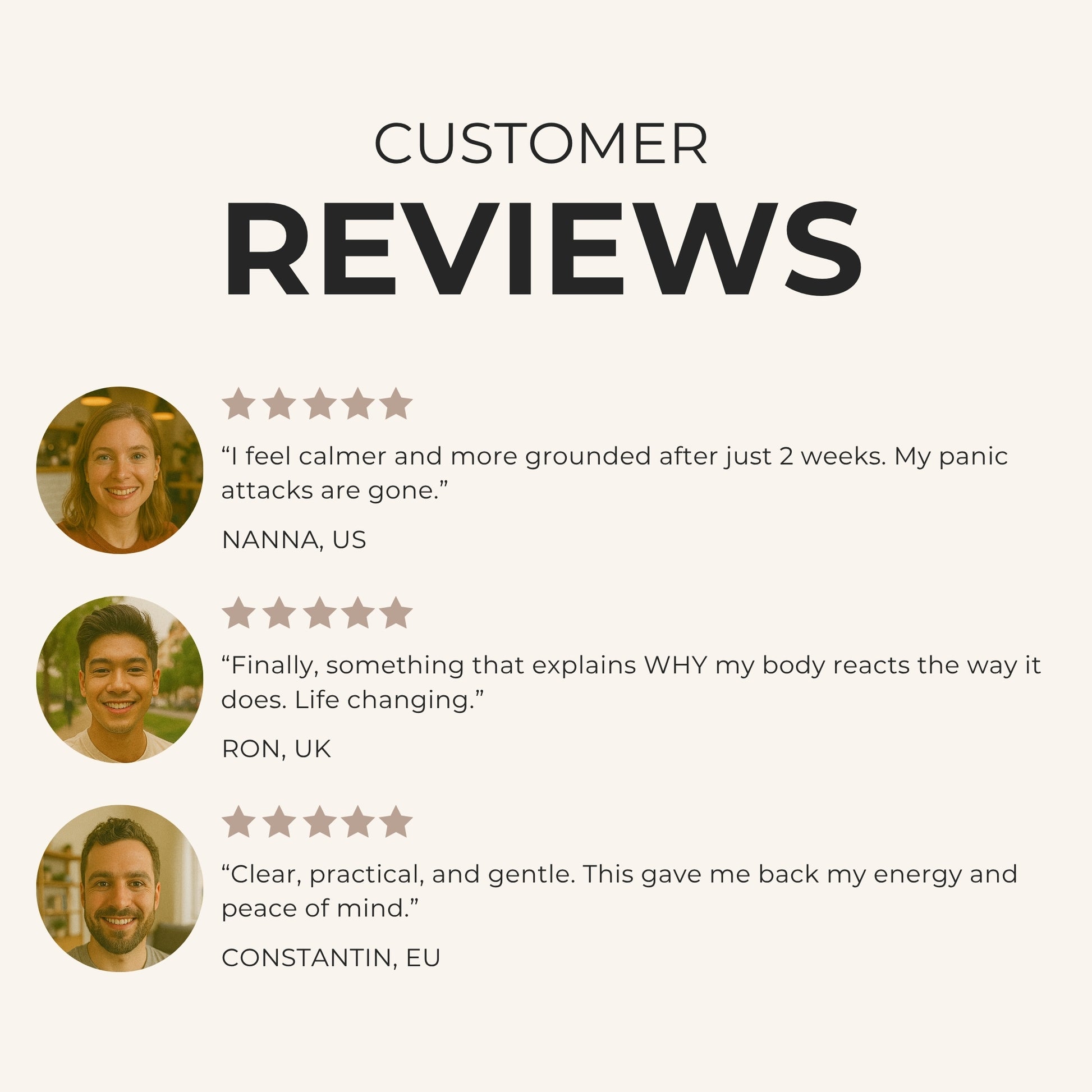 “I used to feel anxious all the time, like I was running on fumes. This guide explained why my body was stuck in survival mode and gave me simple steps to feel safe again. Within three weeks, I felt calmer, slept better, and my energy came back”